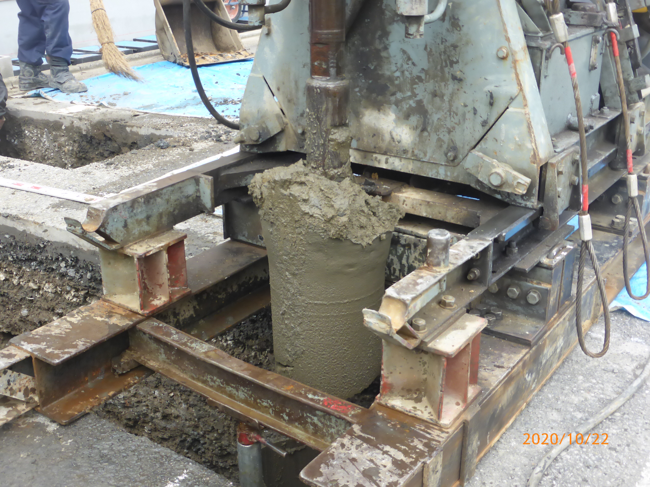 また、地盤改良も必要とせず、削孔は取付管に合わせて行うことにより、削孔土砂の搬出は最小限で済み、環境に配慮した工法です。